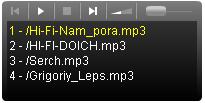 Аудиоплеер поддерживает воспроизведение mp3 файлов,дополнительно оснащён плейлистом для воспроизведения нескольких музыкальных композиций.Файлы музыки Вам нужно будет закачивать на ФТП сайта ( сервер ) на главную страницу сервера,то есть не в дополнительно созданные папки а там где robots.txt и favicon.ico.Так путь до композиции будет коротким,если файлы прописывать из папок то названия в плейлисте будут отражать путь папок например: ( muzik/audio/mp3/pzds.mp3 ).Да,это плеер такой,а что делать приходится выкручиваться если повод есть.А так дополнительных элементов он не имеет,все песни вписываются напрямую в код через разделитель |. Код